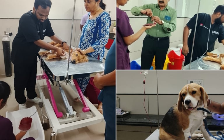 On 4/5/2025, we had a long and intense day at Soulmates Vet. The morning was packed with back-to-back cases, but the real urgency came at night. A 4-year-old Beagle named Fudge was brought in as an emergency, with heavy nose bleeding. His hemoglobin had dropped to 3, and his platelet count was just 12,000. He was severely anemic and needed an immediate blood transfusion. In veterinary medicine, transfusions aren't straightforward — dogs have different blood types under the DEA (Dog Erythrocyte Antigen) system...